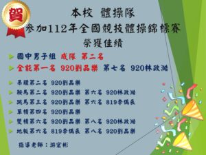 賀本校體操隊參加112年全國競技體操錦標賽 榮獲佳績